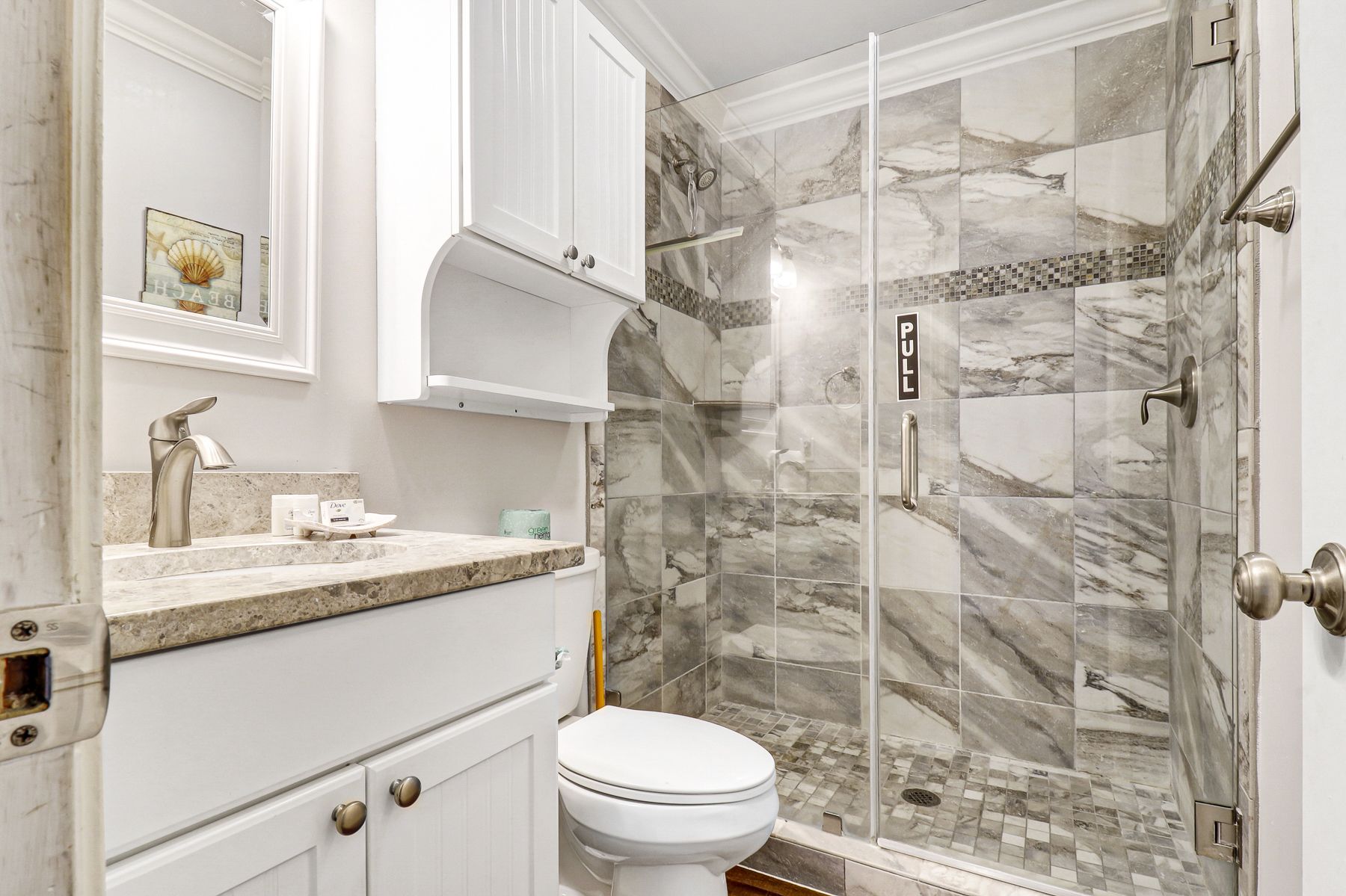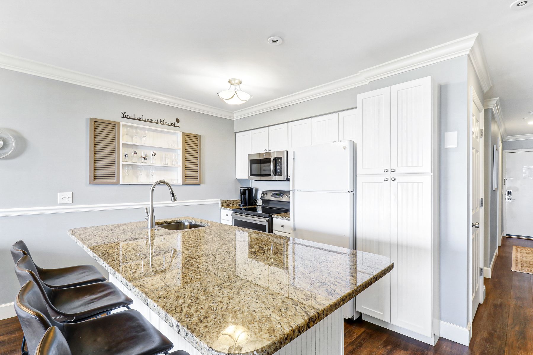 Recently remoded granite countertops, large shower,quality towels N tasteful furnishings. Particularly liked beach chairs umbrella provided. ButWe had brought our own wish we'd have known. Kurig and traditional coffe pot provided.