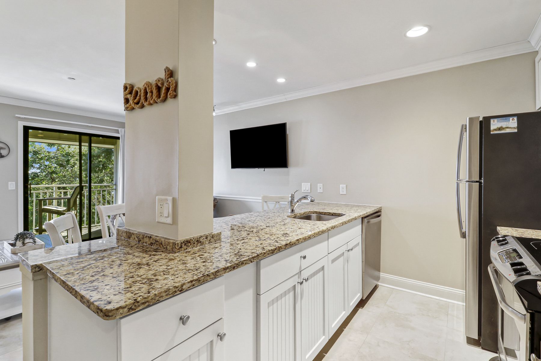 We were looking for a unit with decent size kitchean and this has it. Comfortable living room furniture and bed. TV bit of challenge to use, directions helpful.