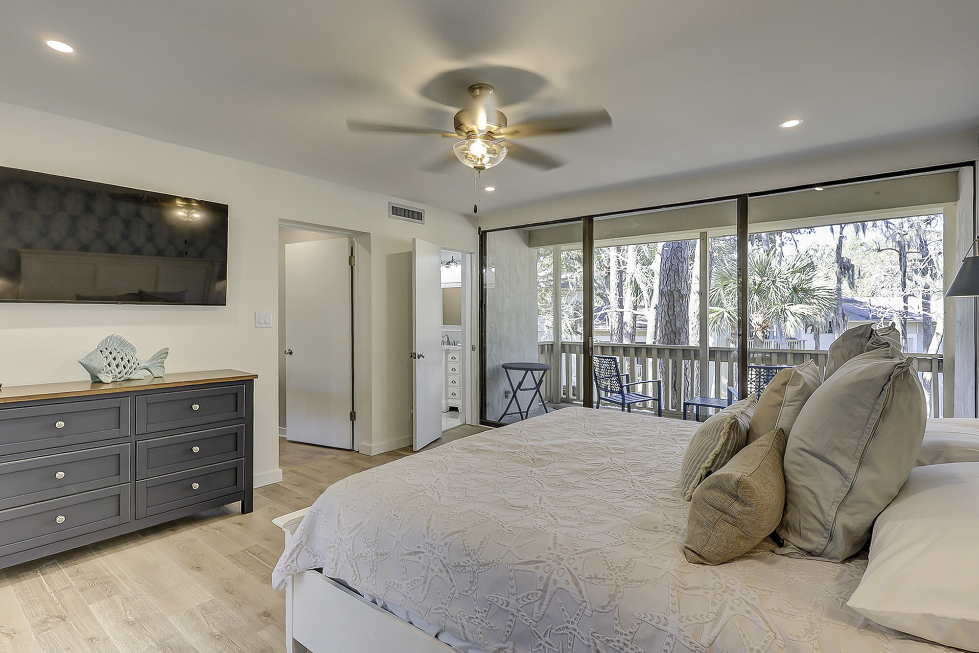 Very clean condo. 3 floors provide plenty of space to spread out. Living room opens to the deck with grill. Great place for families or couples travelling together. The ocean front cabana is a real treat. No walking back to the condo for bathroom breaks. Short walk to the Tiki Hut, Pool Bar Jim's and Coligny Plaza's restaurants and shops. This condo is really nice place. Well appointed with everything you need to make it a home away from home. It's one of the best values on the island. We already reserved for next year. I didn't want to take the chance it would be booked.- Edgar C from Pittsburgh, PA, Posted: 06/26/2024